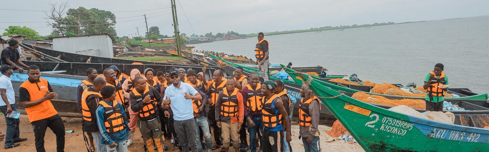 ForteBet, represented by the company brand ambassador, Alex Muhangi and John Nanyumba, ForteBet donated to many fishermen free life jackets at the above site.