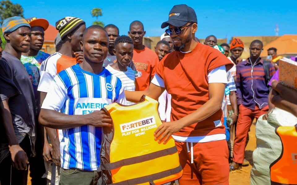 ForteBet, represented by the company brand ambassador, Alex Muhangi and John Nanyumba, ForteBet donated to many fishermen free life jackets at the above site.